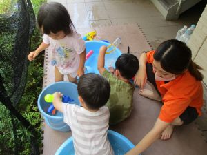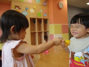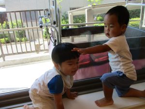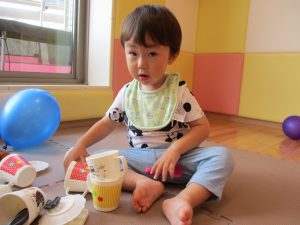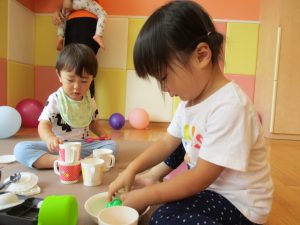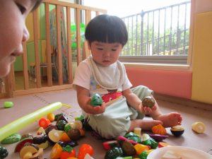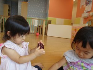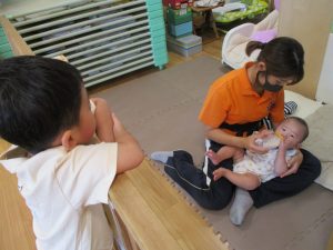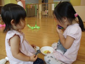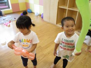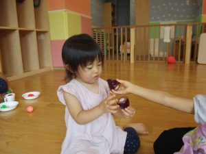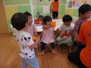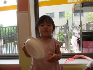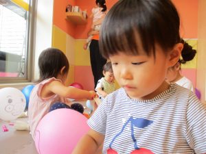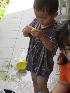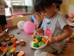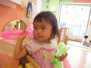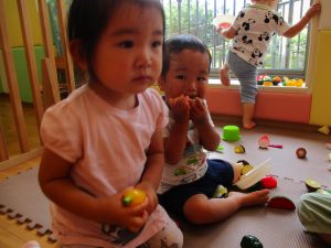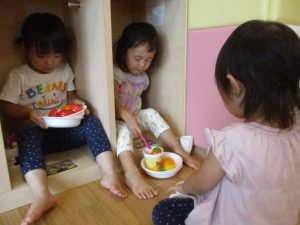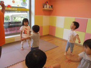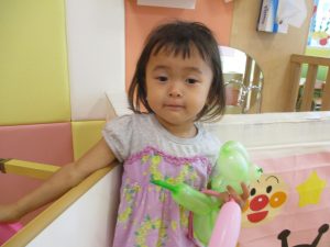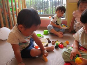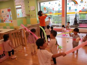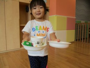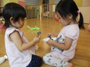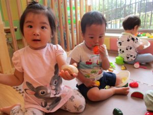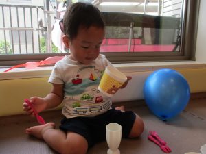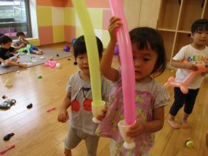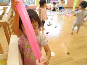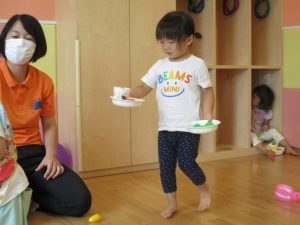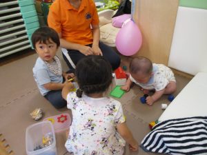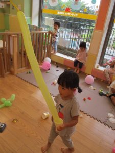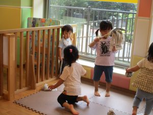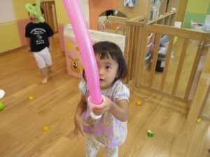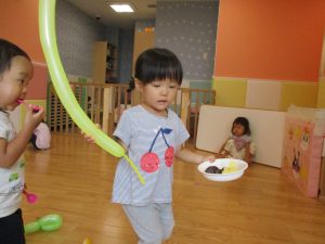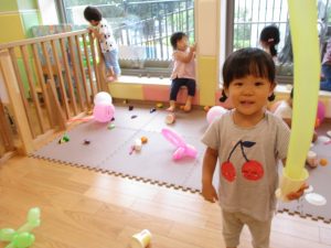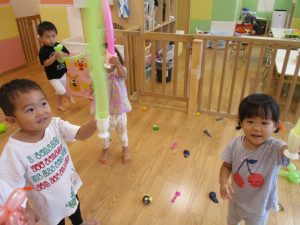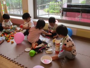 室内ではままごとや風船で遊んだり、水分補給もこまめに行い健康かつ楽しく過ごせました♪
