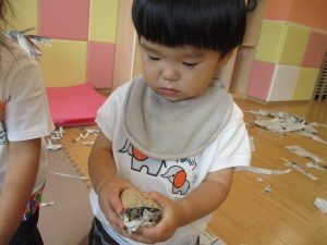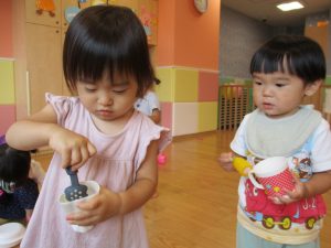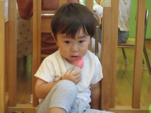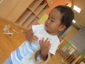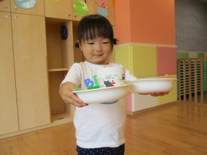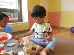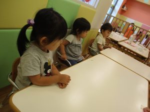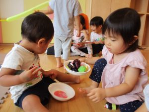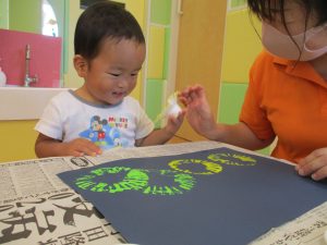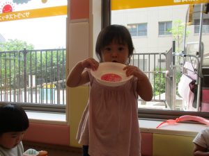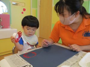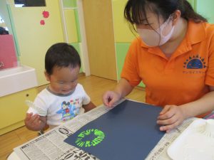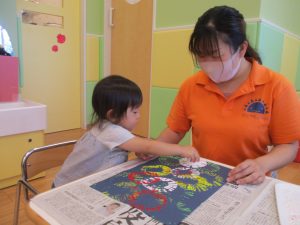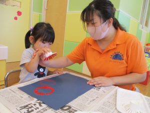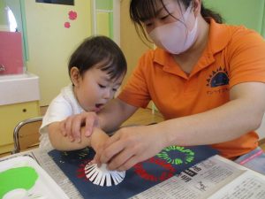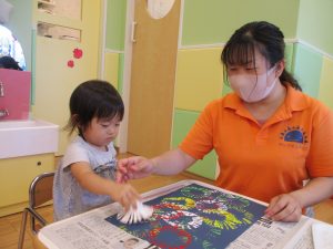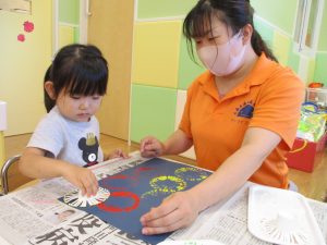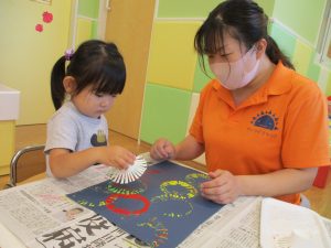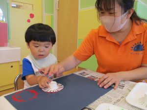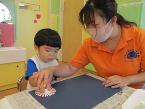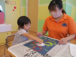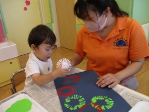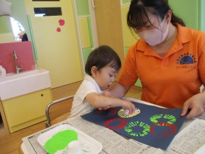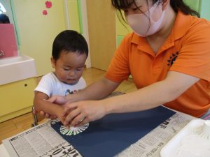 1歳児クラスのお友達は夏の製作を楽しみました!