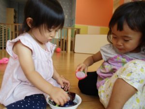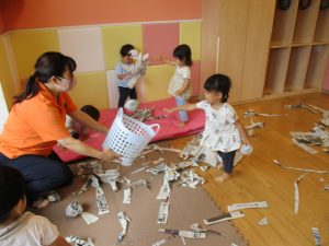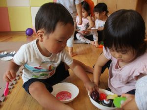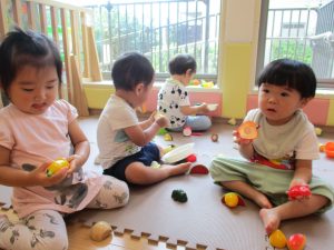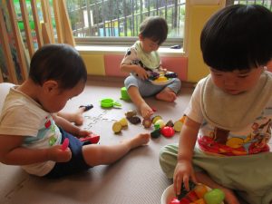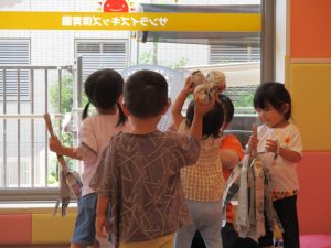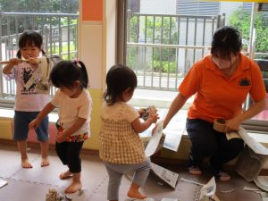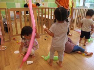 この時期は水遊びに気持ちが行きがちですが、室内遊びも色々な遊びを提供しお子様達が楽しく過ごせるように努めて参ります。