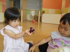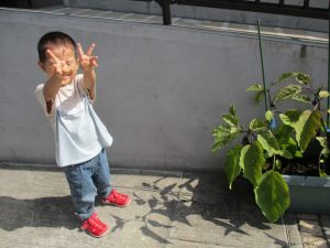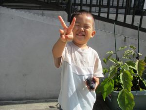 大成功のナスの収穫は2歳児さんを中心に引き続き行って参ります。