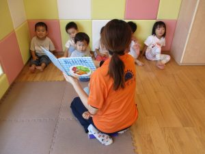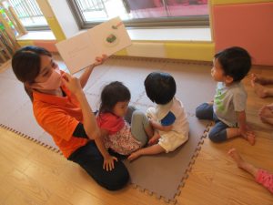 サンライズキッズ保育園では全園で「1日10冊以上の絵本の読み聞かせ」を絵本プログラムとして盛り込ませて頂いております。