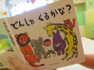 「でんしゃくるかな?」の絵本では「くるかな?くるかな?きたー!」とのシンプルなやり取りを繰り返す絵本となっており、1歳児クラスのお子様でも内容がよく理解出来「次は何が来るのかな?」との期待に目を輝かせている姿が印象的です。