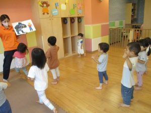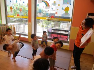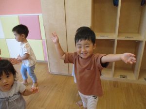 育脳のリズム体操を少し長めに行い、思い切り体を動かし室内でも大満足の様子です♪