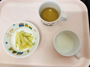 海の香りご飯 中華スープ 厚揚げとピーマンの味噌炒め ブロッコリーのおかか和え キウイ