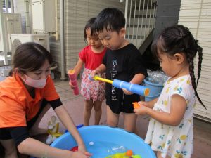 日に日に水鉄砲の使い方も上手になってきましたね♪