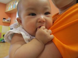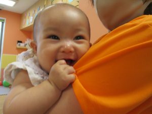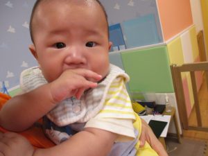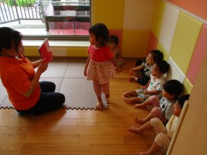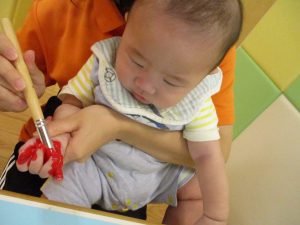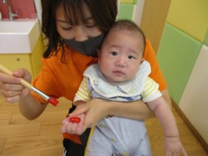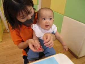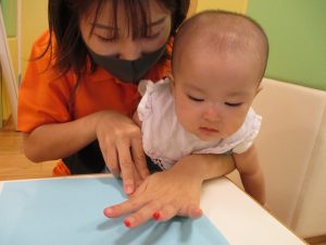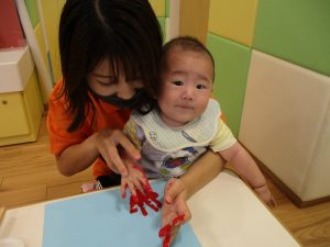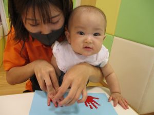 0歳児クラスのお友達も手形スタンプを楽しみました!