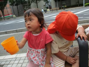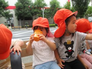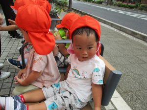 津田沼駅周辺で電車を見て楽しんだり、ベンチに腰掛け水分補給をしながらゆったりと過ごしました。