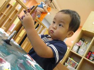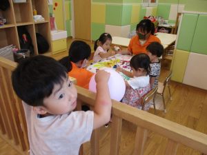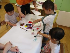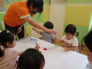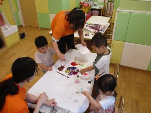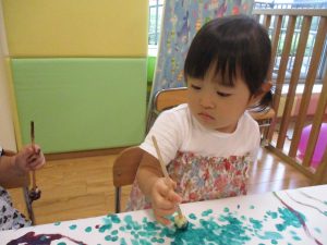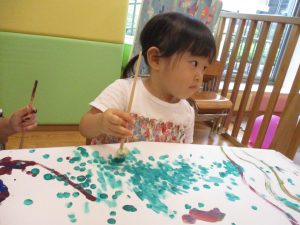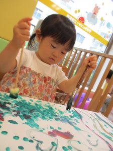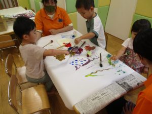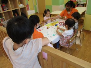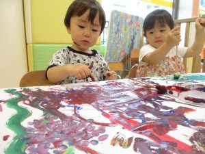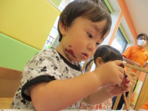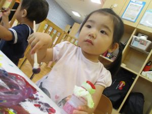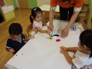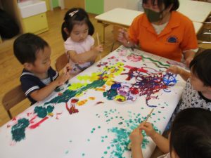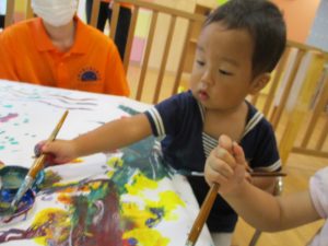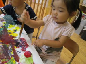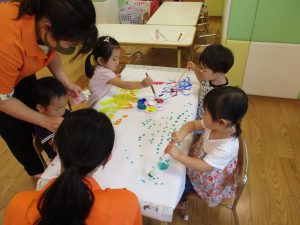 日中は絵の具遊びを中心に楽しく過ごしました。
