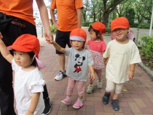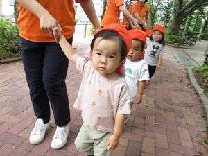 0歳児クラスのお友達も一緒に散歩を楽しめました♪