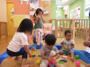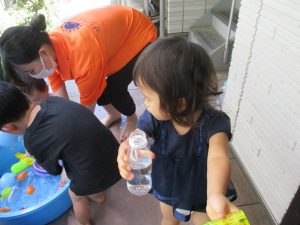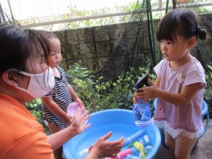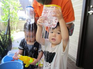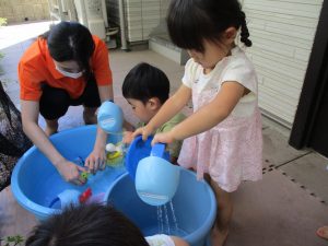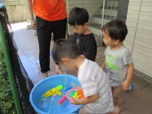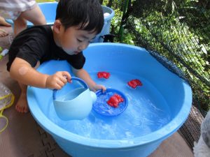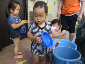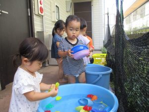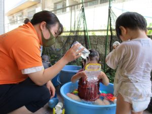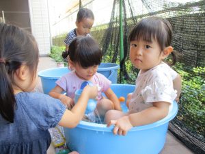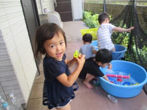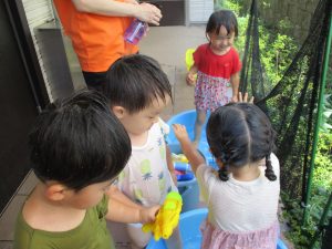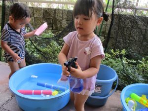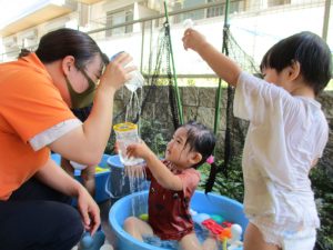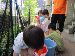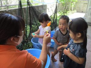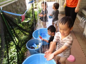 保育園での夏らしい遊びはやはり水遊びがメインとなっておりますので、この水遊びを心行くまで楽しみたいですね♪