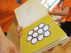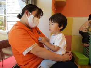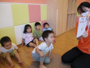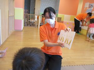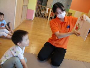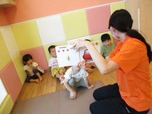 お子様達の前でも絵本の読み聞かせを行っておりますが、集中して見てくれていますね!