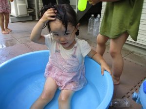 頭以外の全身で水を浴びる事にも抵抗はほとんどなく、皆が水に親しみを持って過ごせているように感じます。
