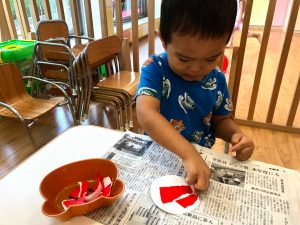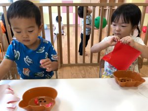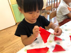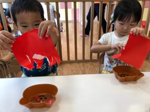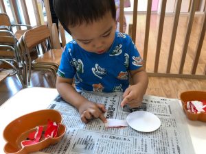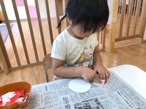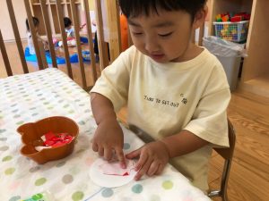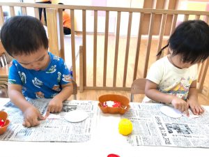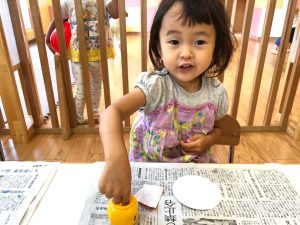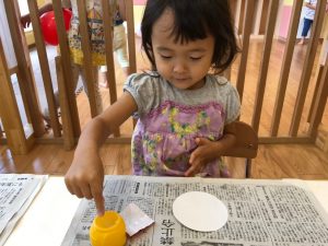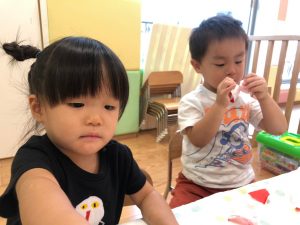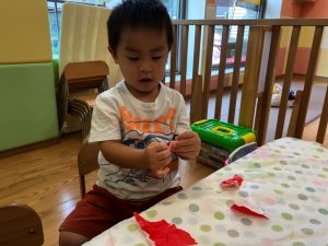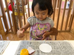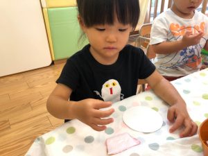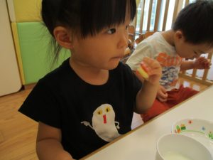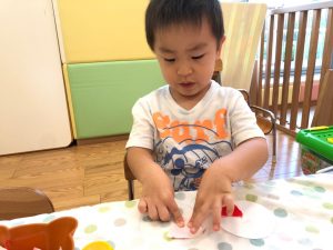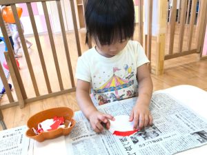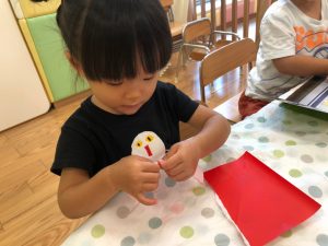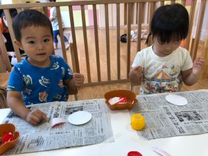 2歳児さんは製作を楽しみました。