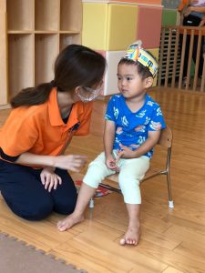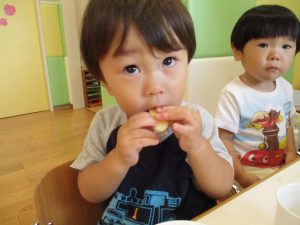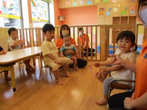 昨日お休みされてお祝い出来なかった8月生まれのお友達の誕生会を行いました。