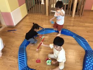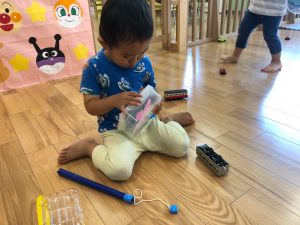 昨日よりデビューしております、手作り玩具の魚釣りも楽しそうに遊んでくれ嬉しく思います!