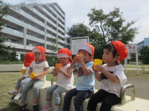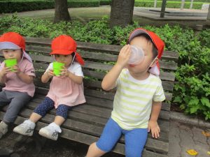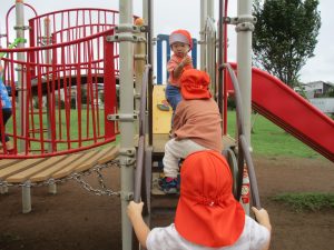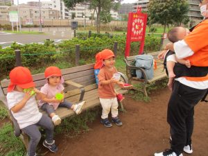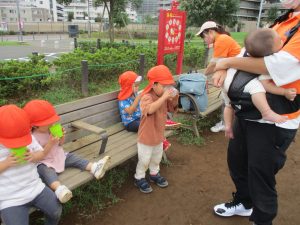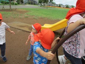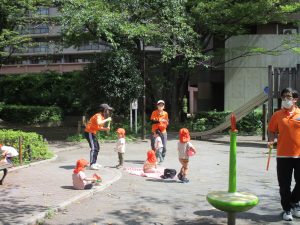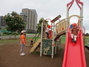 全員でリトミックを楽しんだり、防災公園まで遊びに行きました!
