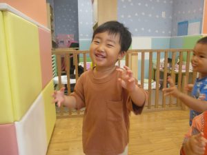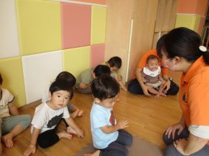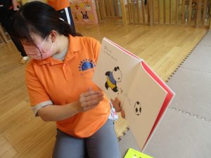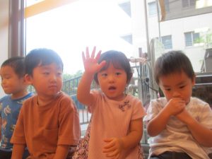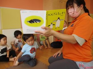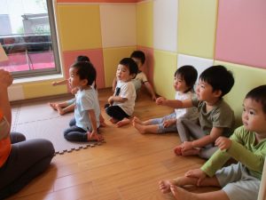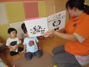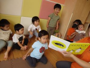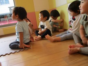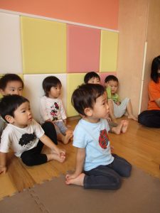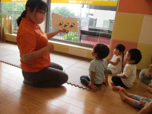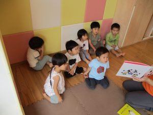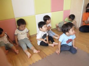 水曜日は育脳カリキュラムの「体操」の日になりますので、リズム体操後に「体操」の絵本を用いて今後の「体操」への意欲や関心に繋げております♪