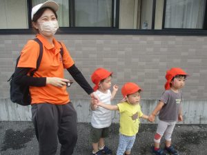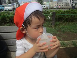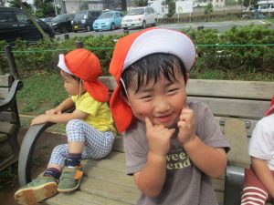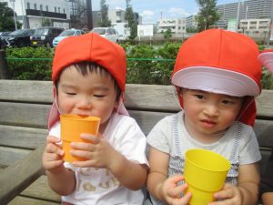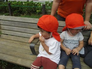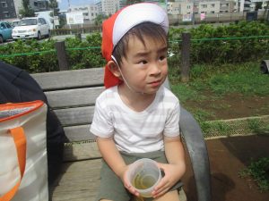 予想以上に気温が上がり、帰園する頃には皆の額には大汗、、、