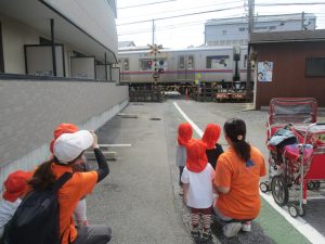 貴重な晴れ間となり谷津駅方面まで京成線を見に行ったり、防災公園にて戸外活動を楽しみました!