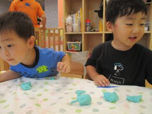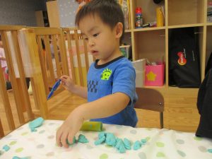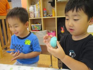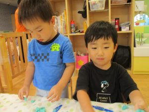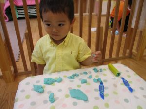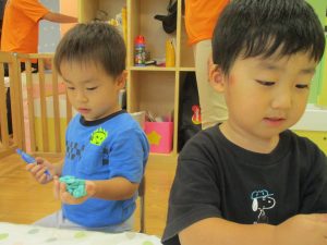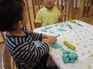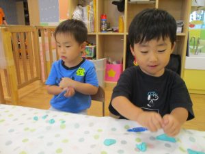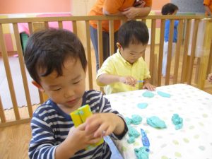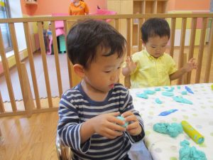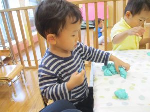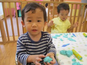隣の保育室では2歳児クラスのお友達を中心に粘土遊びも楽しみました!