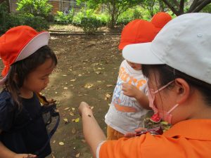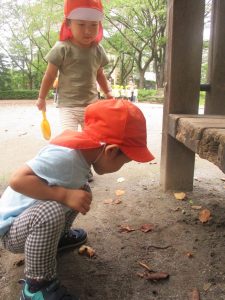 公園内ではローラー滑り台で遊んだり虫探しに夢中でした♪