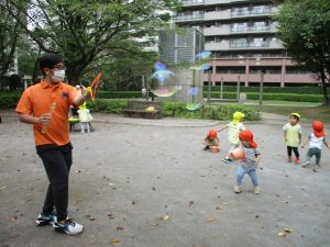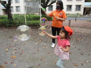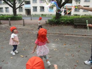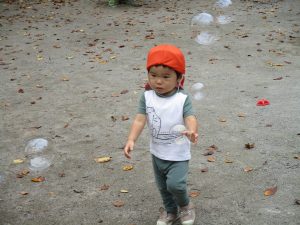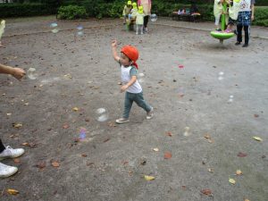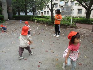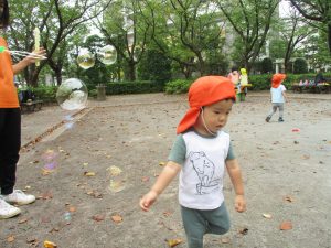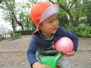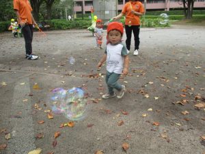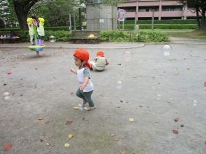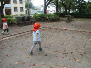 公園内では固定遊具や風船を追いかけて、楽しそうに体を動かしておりました。