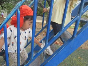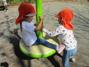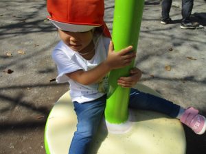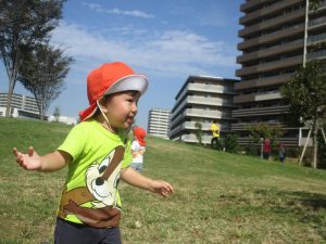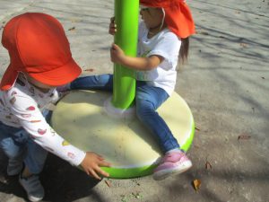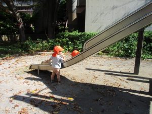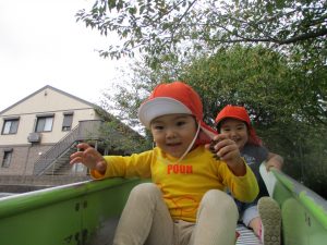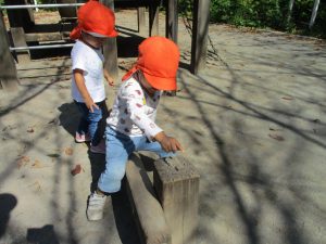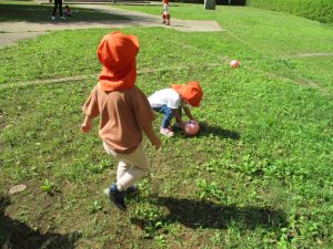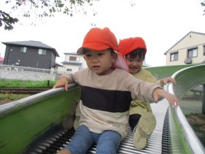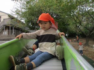 大好きなローラー滑り台を使ってたくさん体を動かしたり、木の実探しに夢中でした!