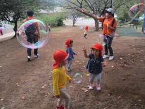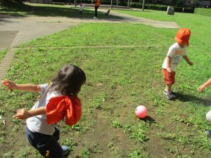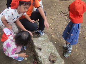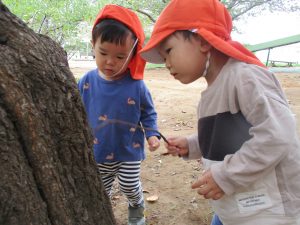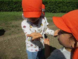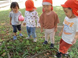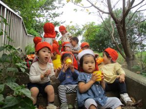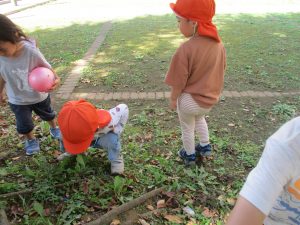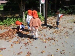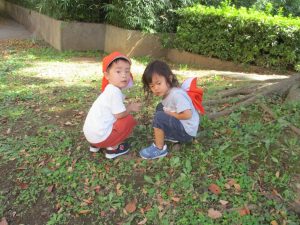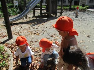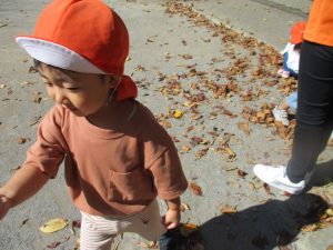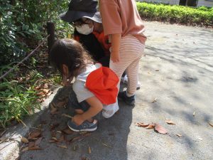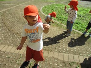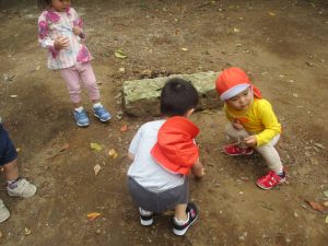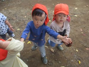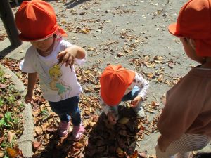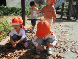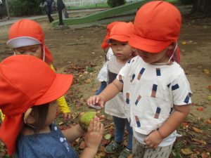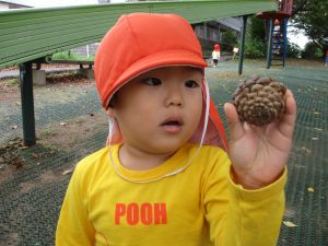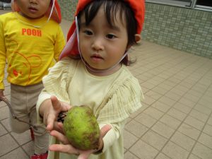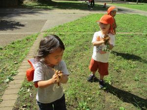 年間を通して多くの木の実が落ちており、季節外れな事もございますがお子様達の喜ぶ姿に先生達も喜んでおります。