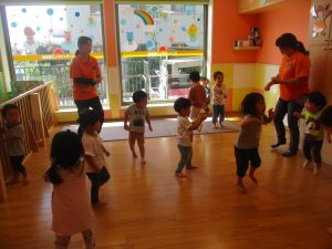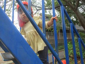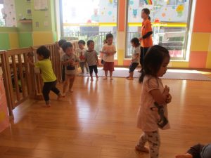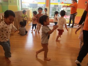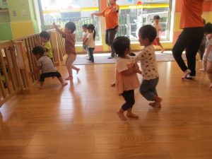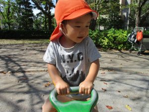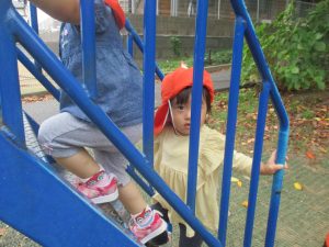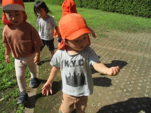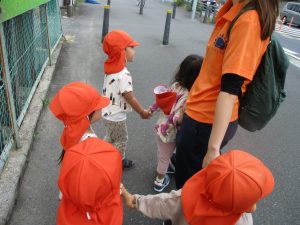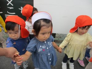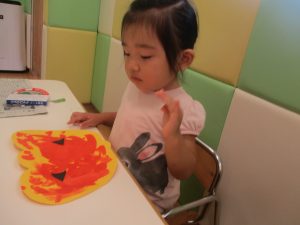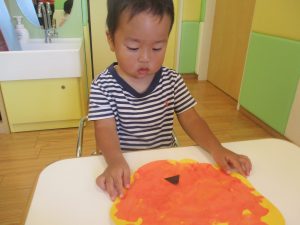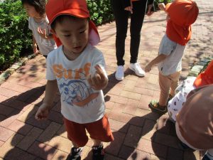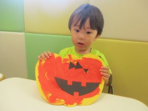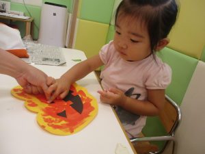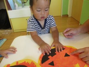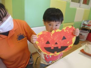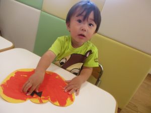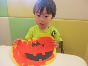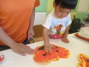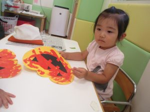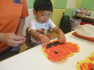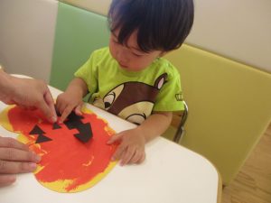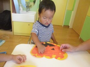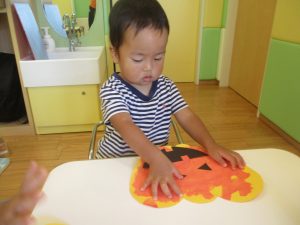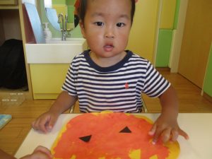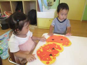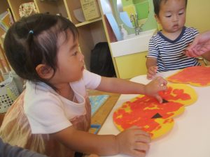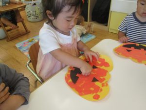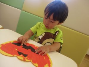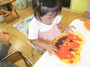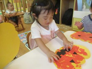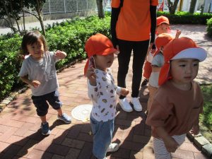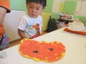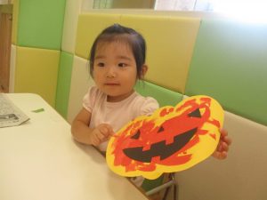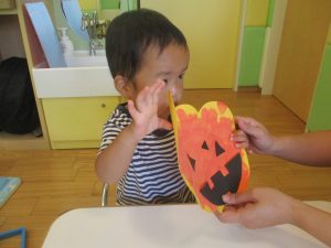 1歳児クラスのお友達はハロウィン製作を楽しそうに仕上げ、その後は防災公園まで遊びに行きました!