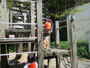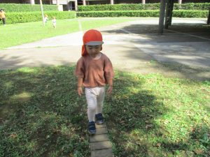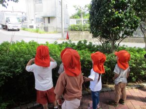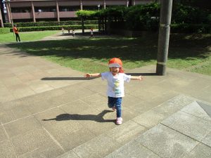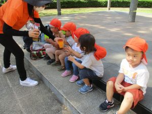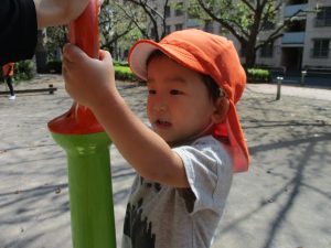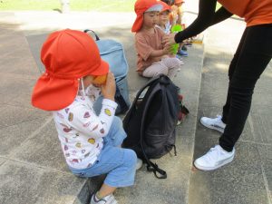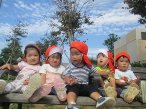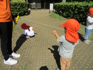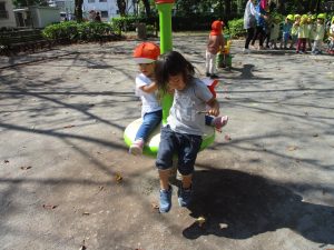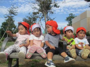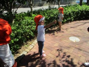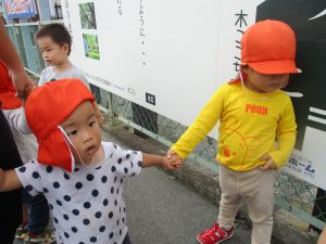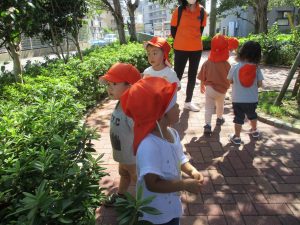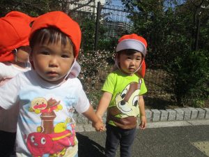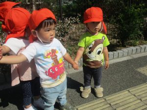 2歳児クラスのお友達はさくら公園まで遊びに行きました。