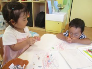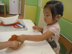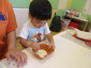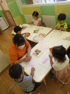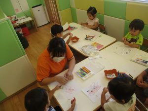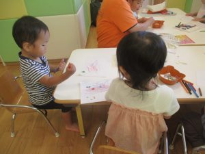 「先生見て~」と作品を自慢気に先生達に見せており、とても夢中で製作を行えた事がその表情から伝わって参ります。