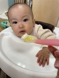 0歳児クラスのお友達も離乳食が順調に進んでおります!