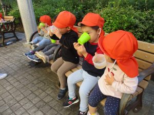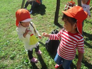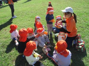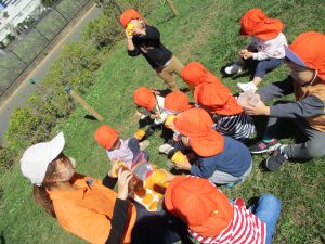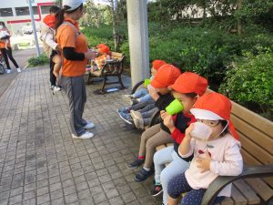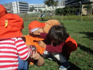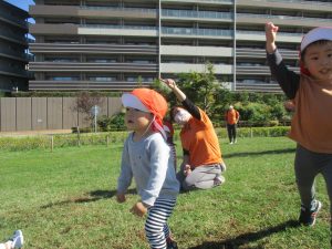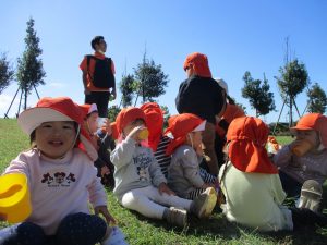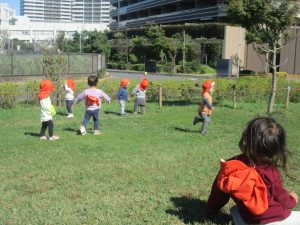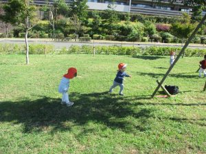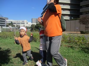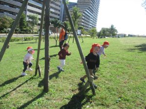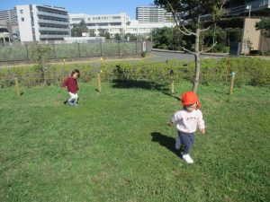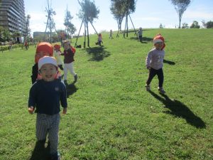 皆で防災公園まで遊びに行きましたが、広場を思い切り駆け回り心行くまで体を動かして楽しく過ごしました。