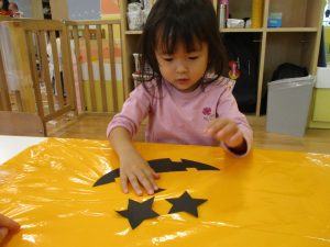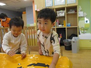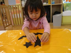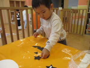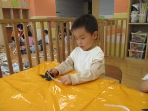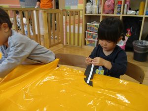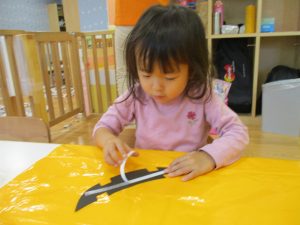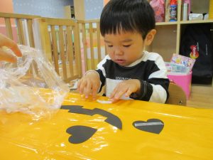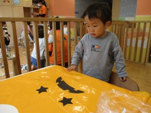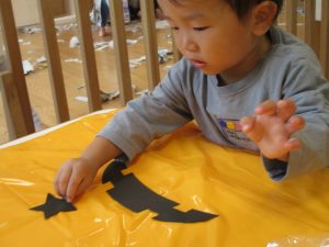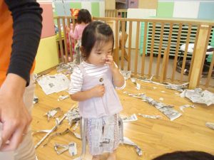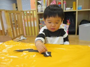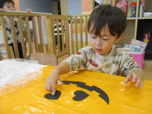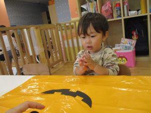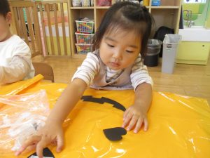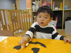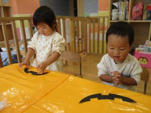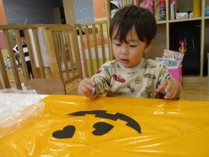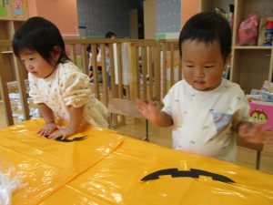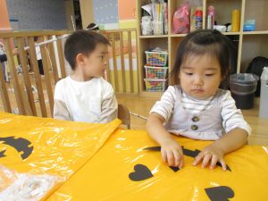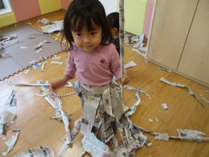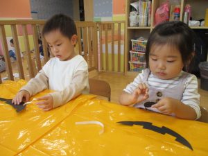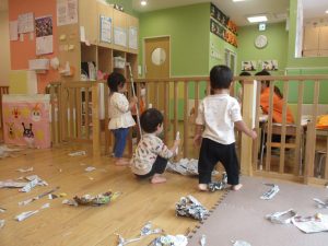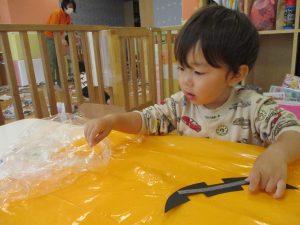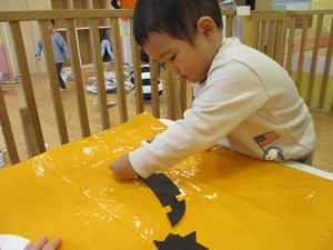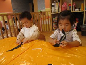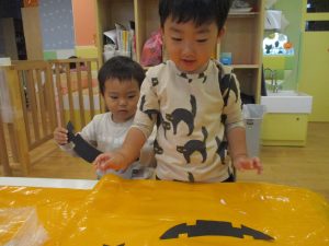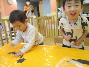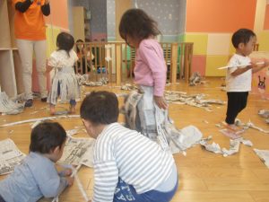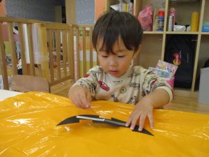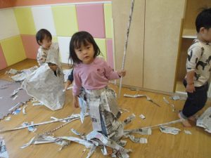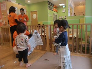ハロウィン会の衣装作りを楽しんだり、新聞紙遊びに夢中でした。