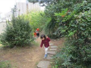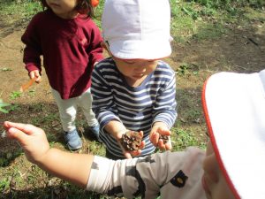 奥の林まで散策に赴きましたが木の実パラダイスとなっており、皆の冒険心が駆り立てられておりました。