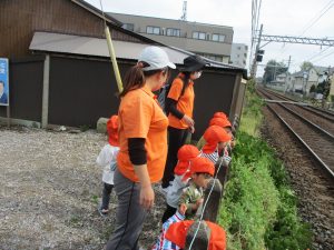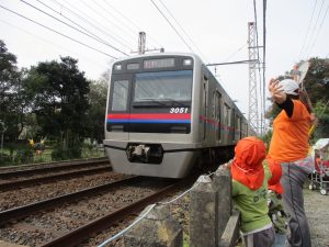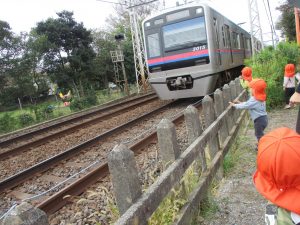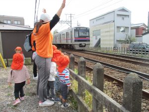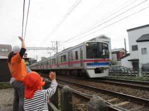 雨上がりと言う事で公園の遊具は濡れている為、日中は全員で谷津駅周辺まで電車を見に行きました。