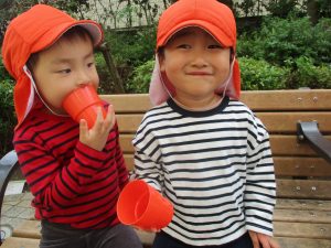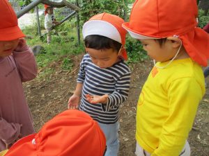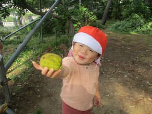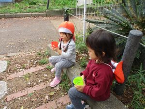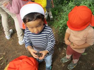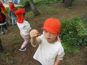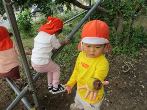 「園長先生お土産!」と2歳児クラスのお友達が連日小石や木の実を持って帰ってきてくれるので、私も散歩した気持ちになれとても嬉しく思います♪