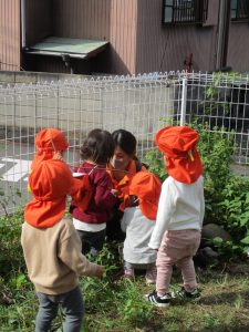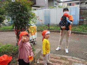 園の外に目を向けても道路や公園内に落ち葉や枯葉が多くあり、遊びの一環として取り入れたり季節の移り変わりを皆で共有して参りましょう。