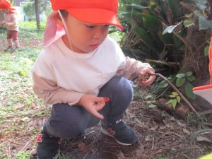 木の実や枝や小石などこの時期ならではの自然物がとても多くあり、目を輝かせながらお気に入りを選んでおりました!