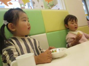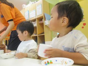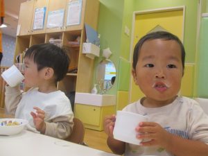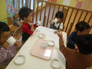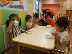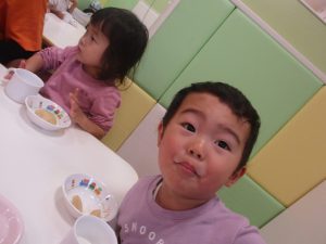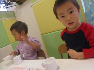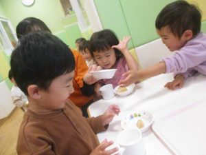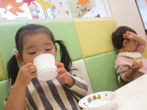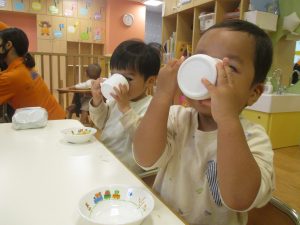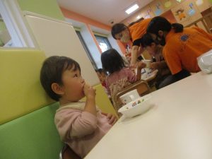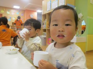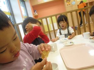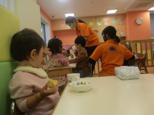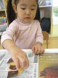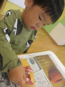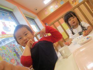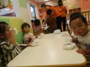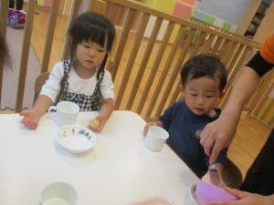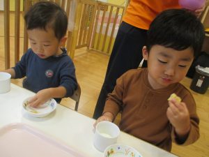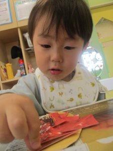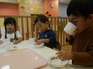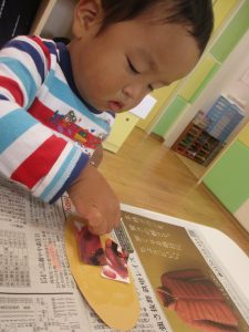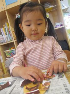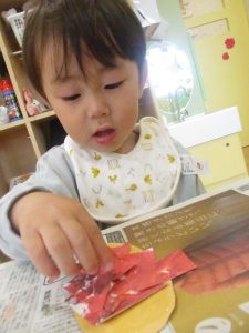 1歳児クラスのお友達は朝方に秋の製作を楽しみました!