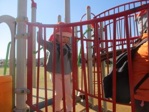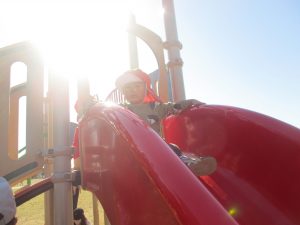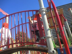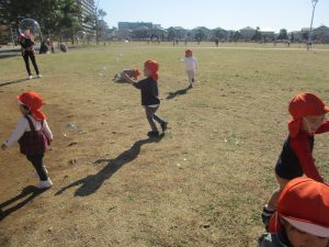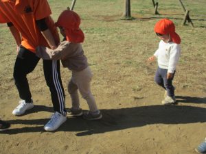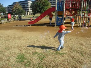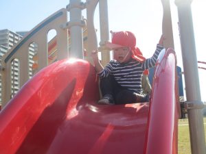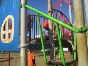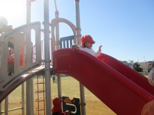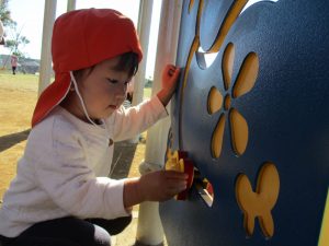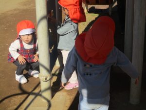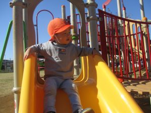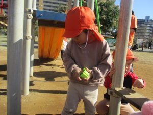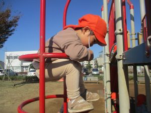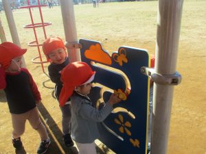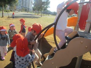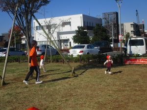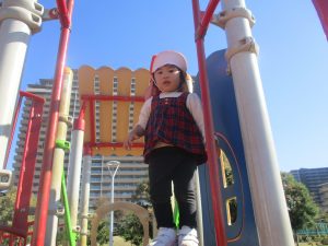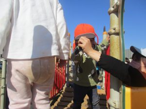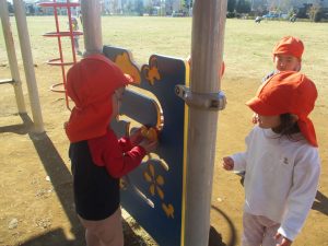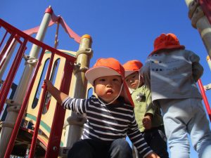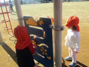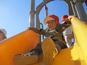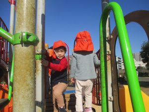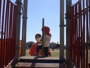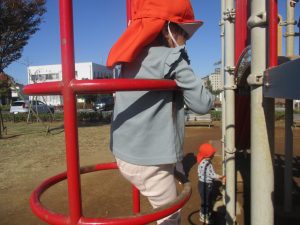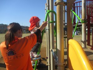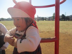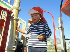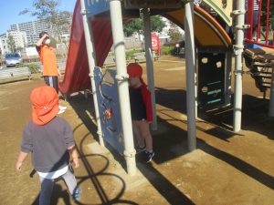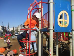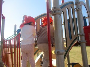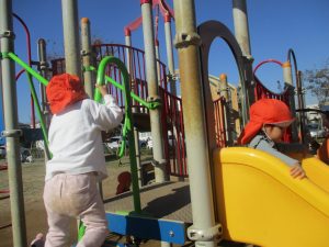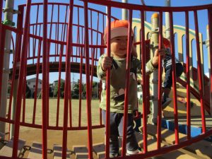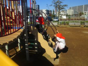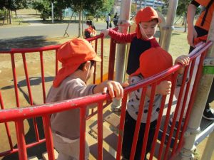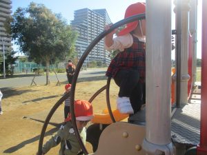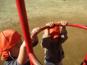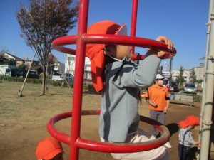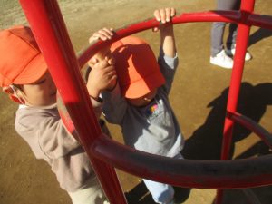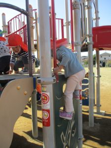 快晴にも恵まれ、固定遊具を使ってたくさん体を動かしました。