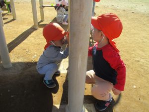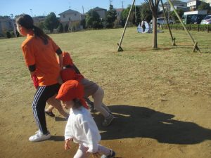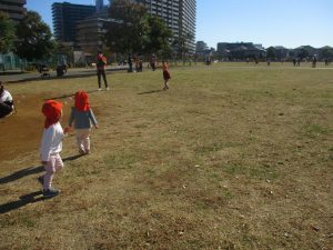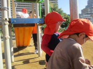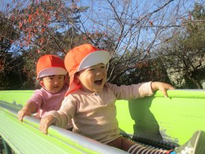 0.1歳児クラスのお友達は谷津コミュでローラー滑り台で体を動かしたり、木の実や葉っぱを拾い集める等、秋探しを楽しんだり園周辺のモール内にあるクリスマスのイルミネーションを見に行きました!