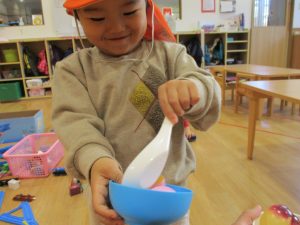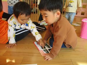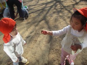 2歳児クラスのお友達は進級先の連携園となっております「アスクかなでのもり保育園」様と交流をさせて頂きました。