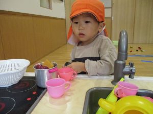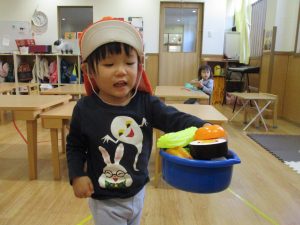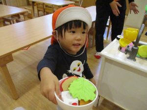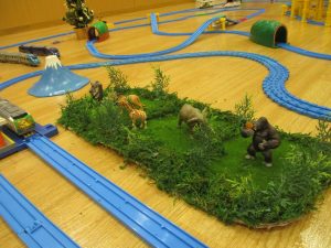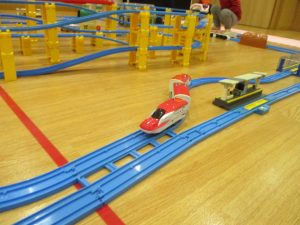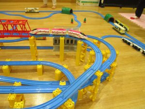 園内に特設されたプラレールの大きなジオラマを見させて頂いたり、ウッドレールやままごと等、様々な玩具で遊ばせて頂きました。