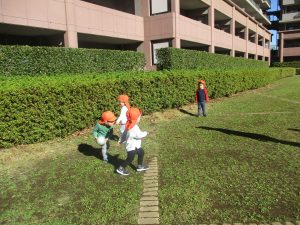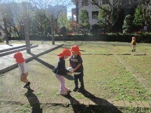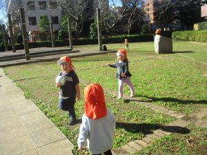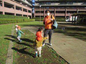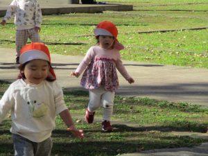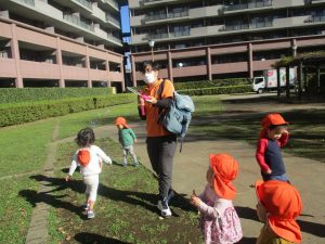 1.2歳児クラスのお友達はさくら公園までおでかけ致しました。