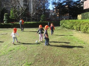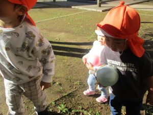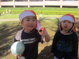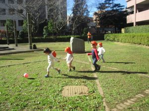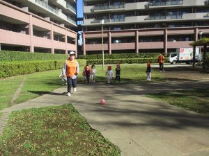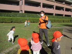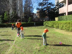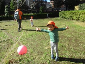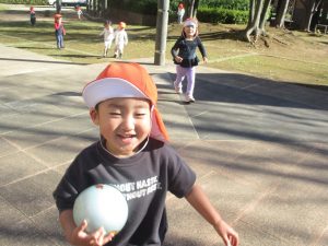 先生や友達と一緒に追いかけっこを楽しんだり、園から持参したシャボン玉やカラーボールを使って思い切り体を動かして過ごしました!