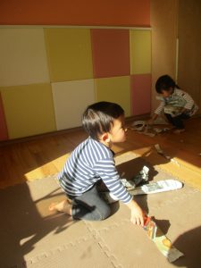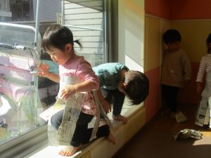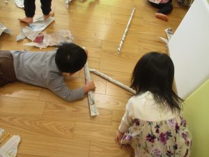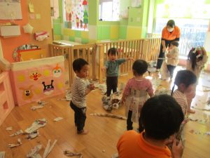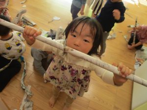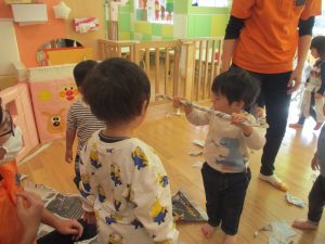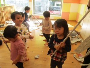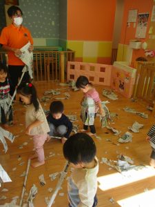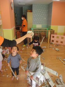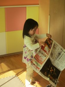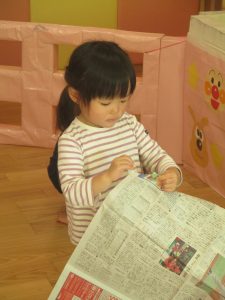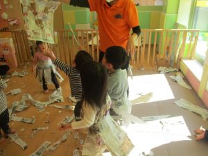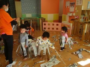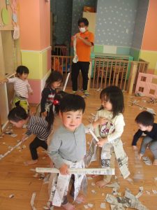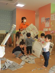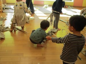 日中の天気は良かったのですが、室内にて過ごし新聞紙遊びを心行くまで楽しみました♪