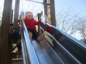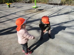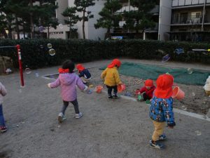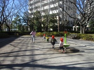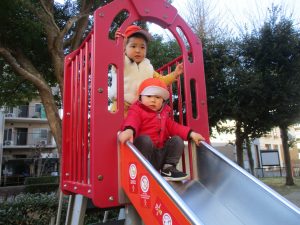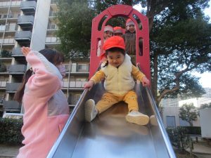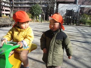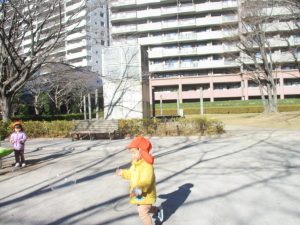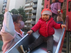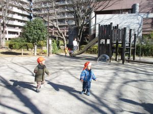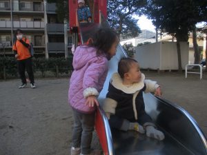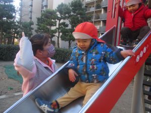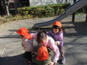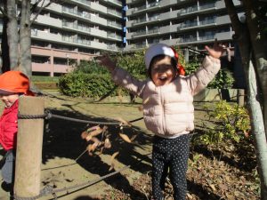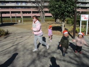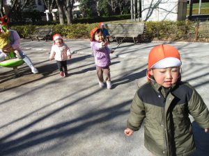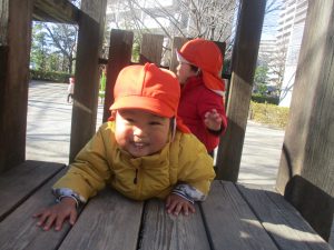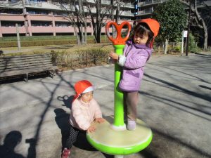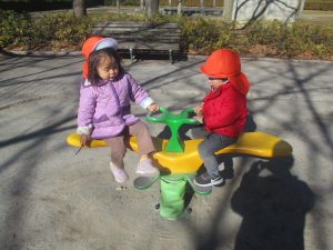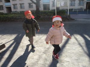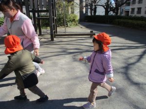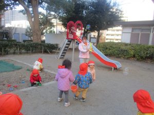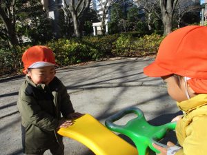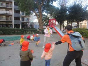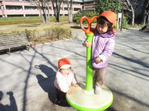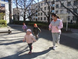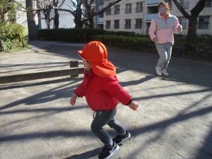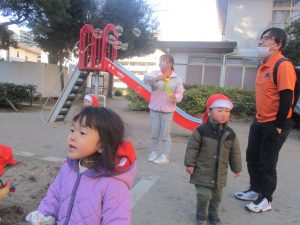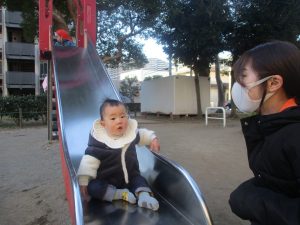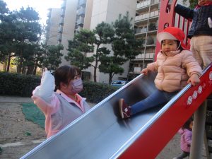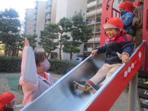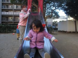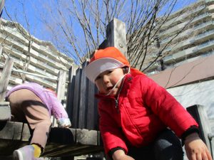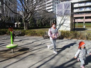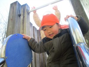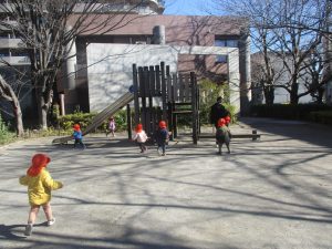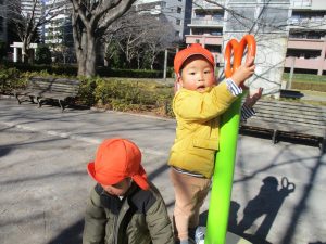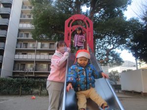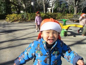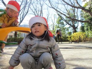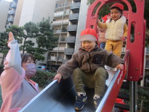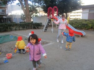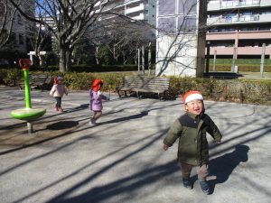 固定遊具を使ったり、公園内の広場で先生や友達と一緒にかけっこを楽しむ等、年明け初日から全力で過ごせました。