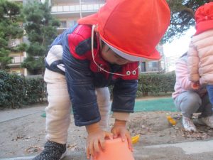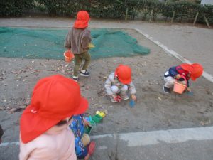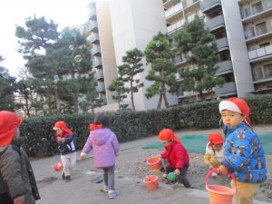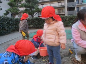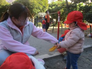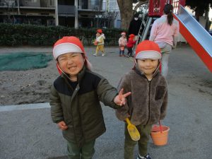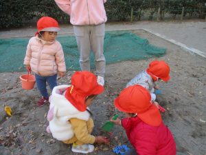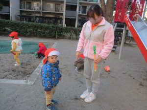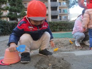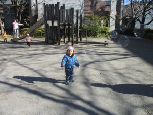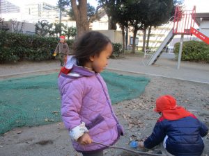 砂場でのままごと遊びを楽しんだり固定遊具で思い切り体を動かして遊び、厳しい寒さを吹き飛ばす程楽しい時間を過ごせました!