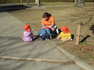 「保育始め」と言う事で1.2歳児クラスのお友達でさくら公園まで遊びに行きました!